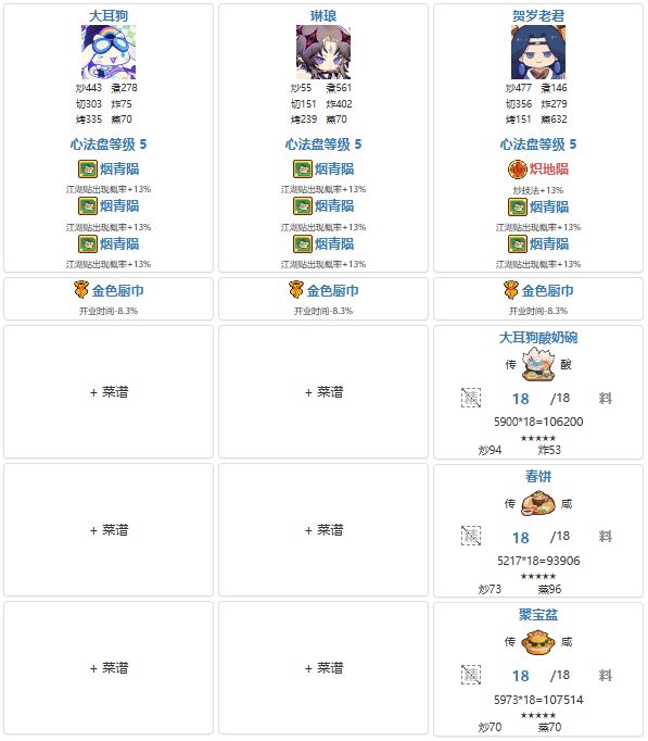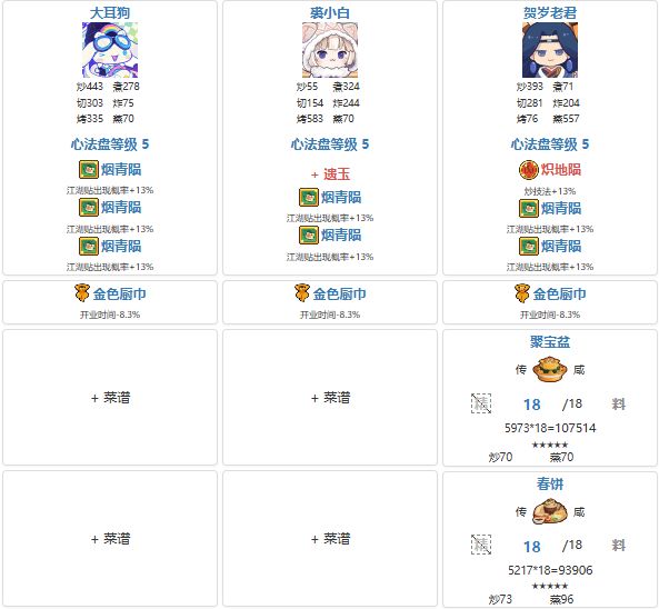 江湖帖概率:厨师技能及遗玉增加的江湖帖出现概率