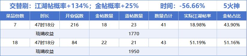 琳琅队优势是多13%的江湖帖率和多一道菜的选择;