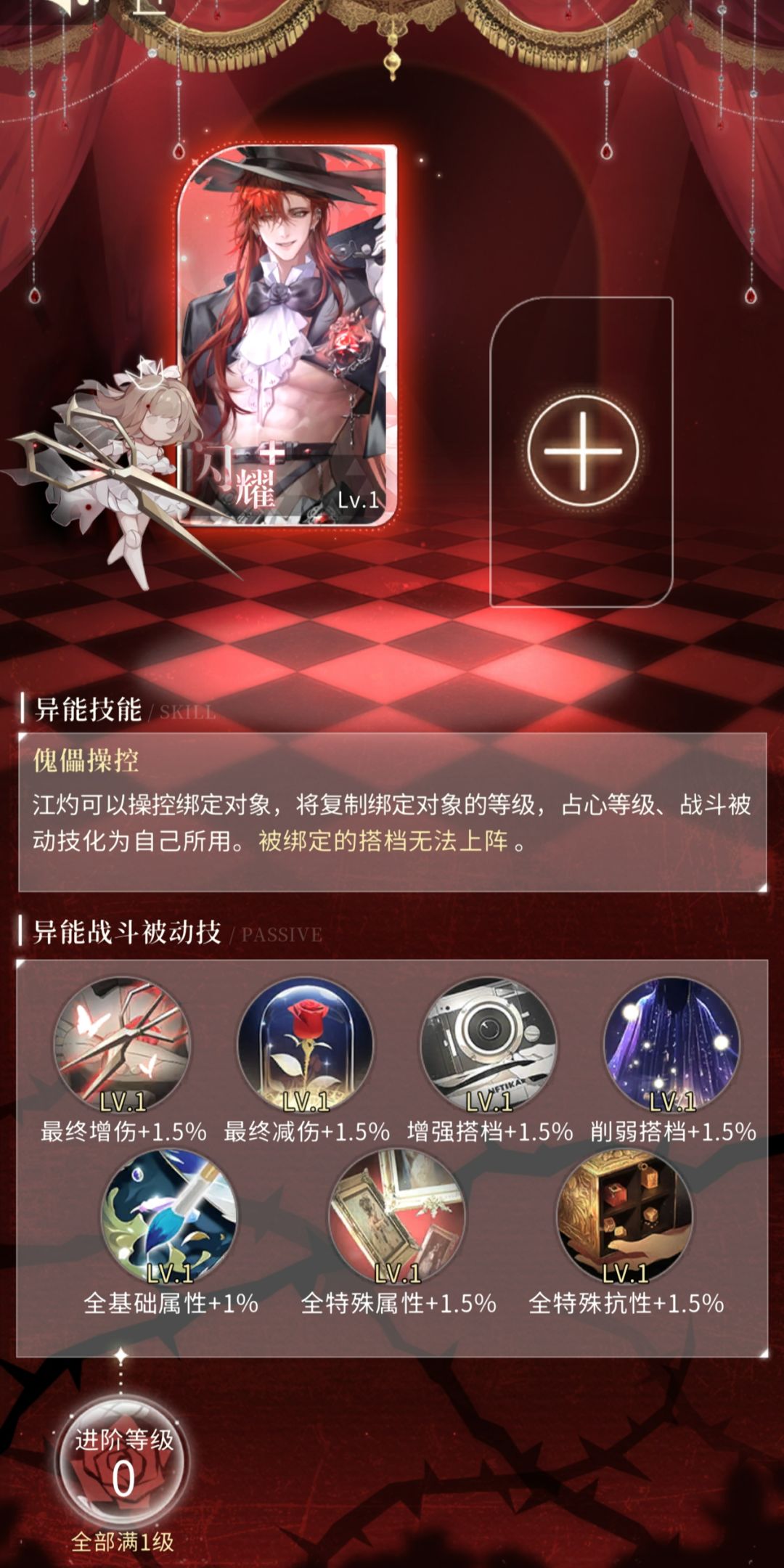江灼可以操控绑定对象,将复制绑定对象的等级,占心等级、战斗被动技化为自己所用。被绑定的搭档无法上阵。