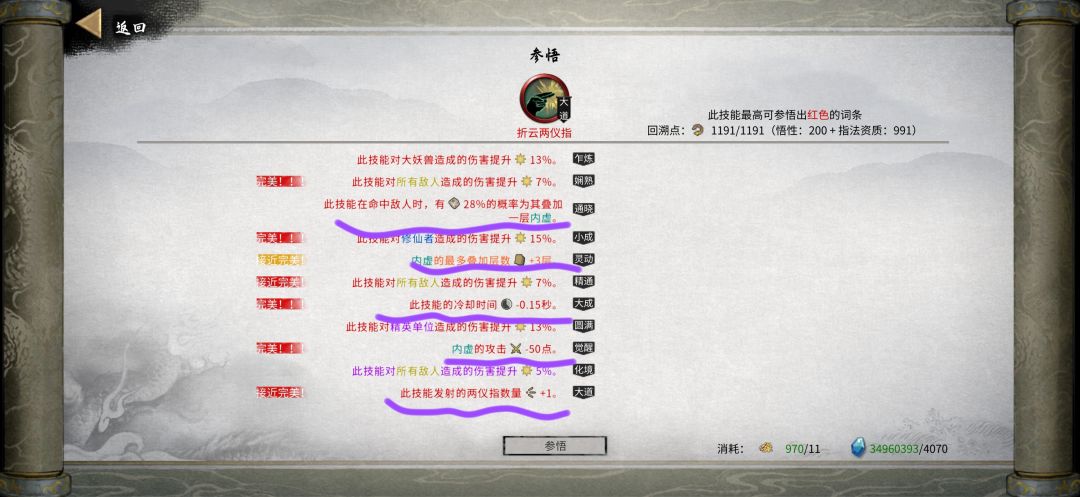 3. 先受后攻:羽化前boss一直被晕,根本触发不了先受后攻,因此羽化/登仙再拿,前期先拿杀心骤起,再拿穿云电闪
