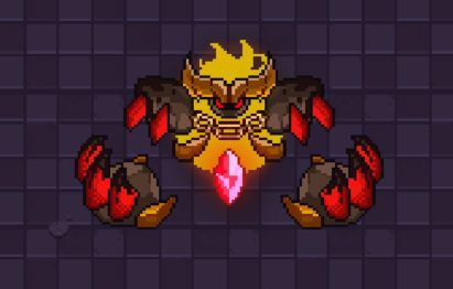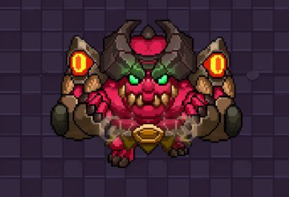 恶魔的双角从火焰中钻出,双肩的眼睛诡异地转动,扫视了一会过后,这位火焰的魔王突然以不可思议的速度在熔岩里旋转向着勇者冲来!