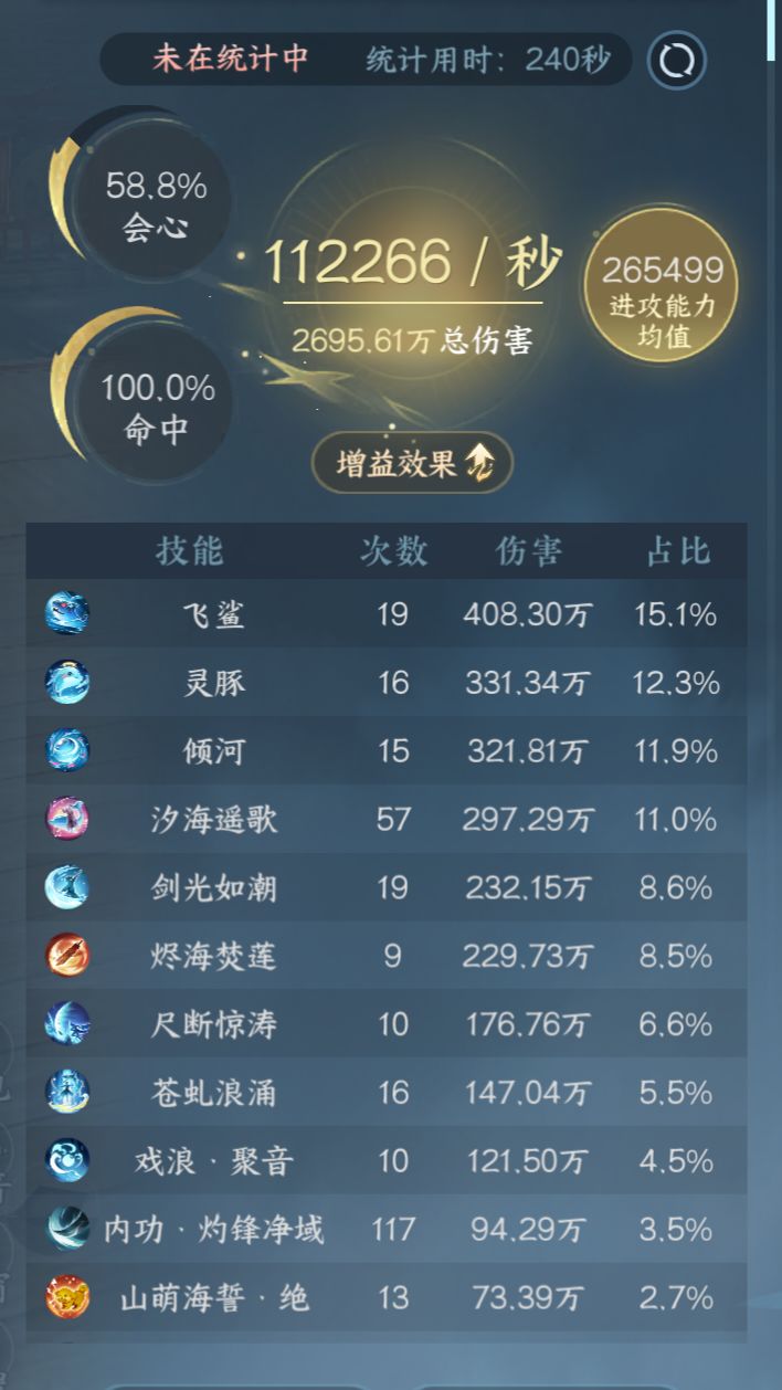 P2技能搭配没啥好说的,延续上版本戏鱼流。新赛年内功几乎全面优于旧内功,能凑三金火或者三火木优先凑周天,实在凑不出就像我这样带。装备当前毕业在P3