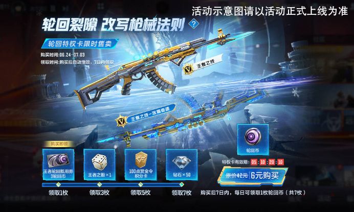 这里额外提醒一下各位玩家,7月王者轮回将不再推出一元购活动,但可参与支线活动购买轮回特权卡。玩家在购买后的7个自然日内(含购买当日),每日登录游戏可领取轮回币×1,最多可领取7枚轮回币,购买后将会自动生效,并在每天0:00刷新领取次数。算上抵扣券,7天最多领取等价10枚轮回币,还是比较划算。