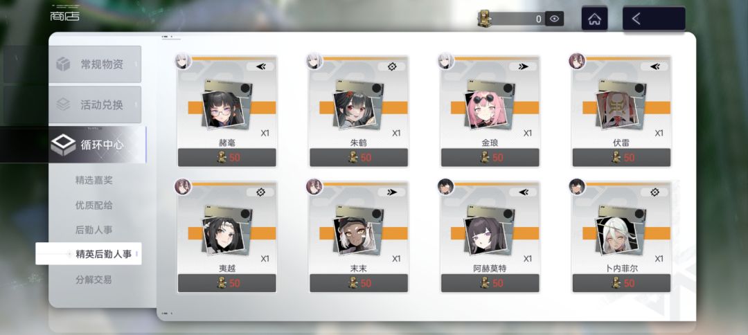 限定本2个后勤(版本新角色外),适合未复刻角色赌位置和赌属性,若运气不好随机到属性很好的重复位置也只能回收分解化为10点人事额度。