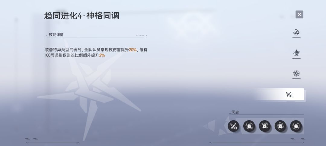 C位全开,辅助位看辅助加成方式,例如辉耀只开支援技2个神经网格点,夜天光开支援技和爆发技4个神经网格点。待资源丰富再全开(每开2个拿1常驻角色票,全开拿3常驻票)。