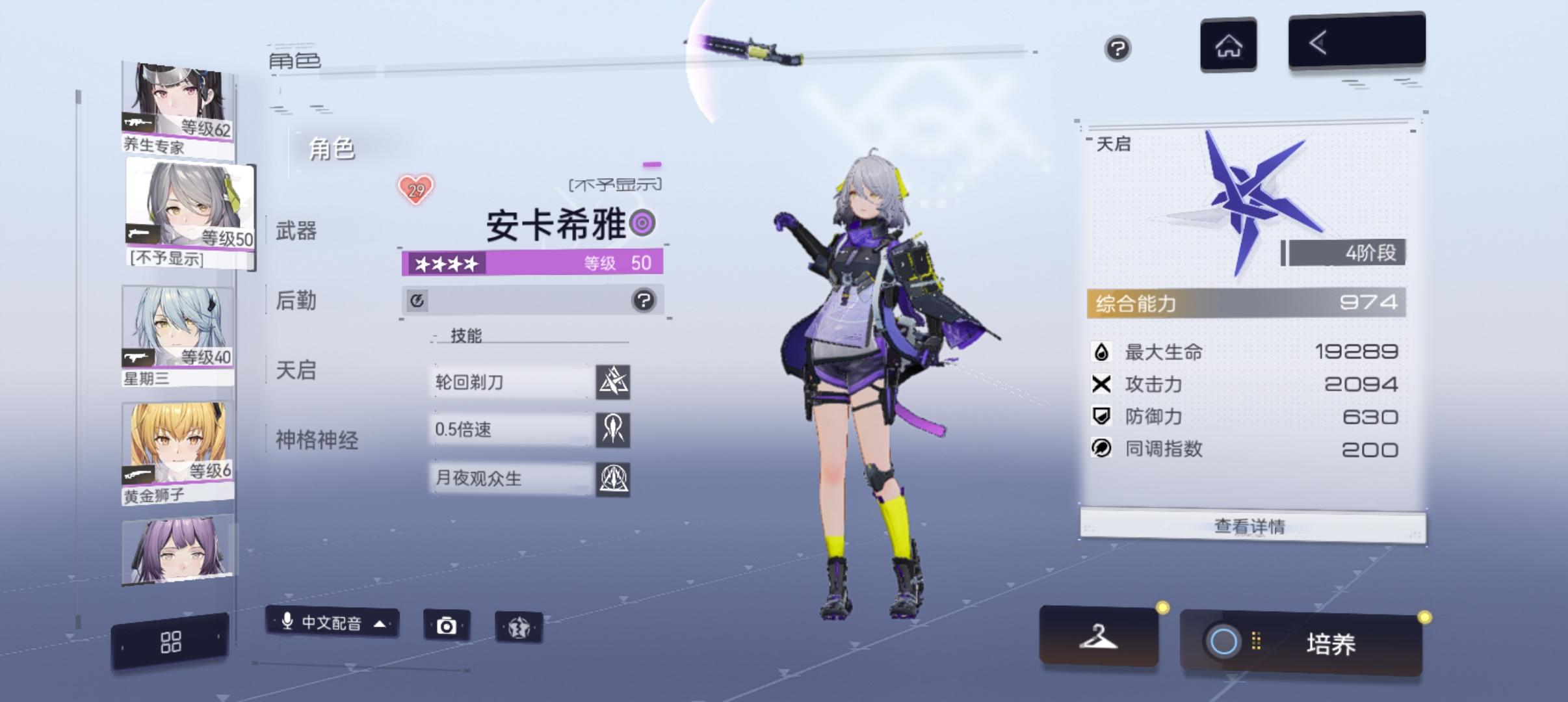 角色培养3方面 本体(天启) 专武和后勤,缺啥补啥,当拥有0+1的正确词条满数值的新角色C基本不卡主线关不卡活动关,拥有同样0+1的正确词条满数值C专辅的话,舒适度提升很大。