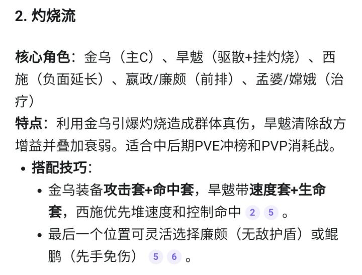 火烧队核心就是扛得住旱魃开局妙法灯晕人,有没有发现pk场很容易被金乌翻了开局群攻一直控到死,针对这个要有7星廉颇,速度套开局挂2回合免疫针对金乌或者法师队群攻妙法灯晕人。推荐这两套为啥推后裔,因为金乌没有限定池抽取太慢了,平民除非运气好,不然想金乌到7星可能要歪两礼拜半个月。