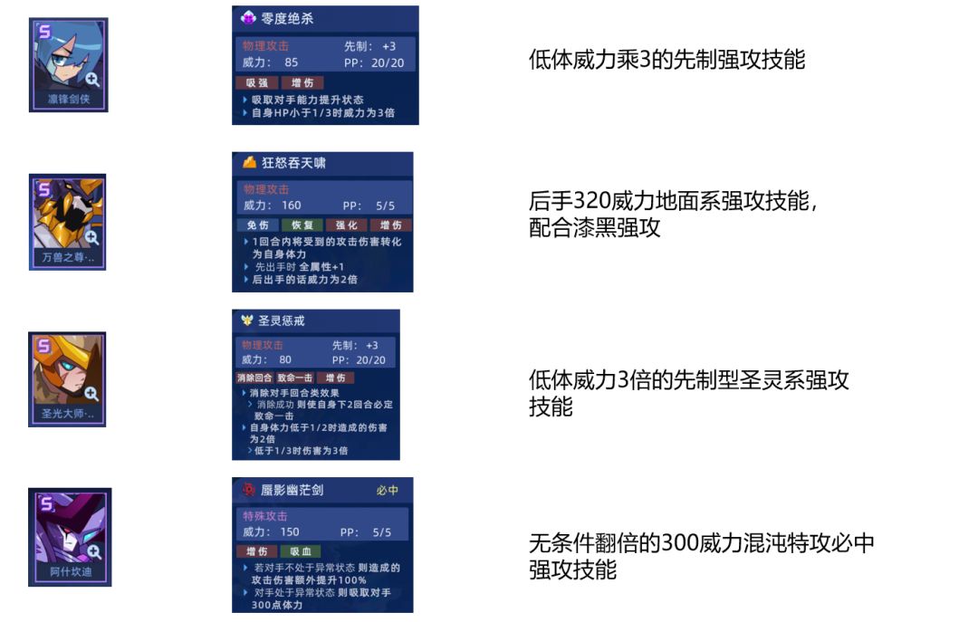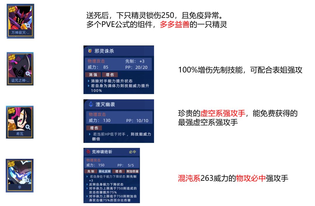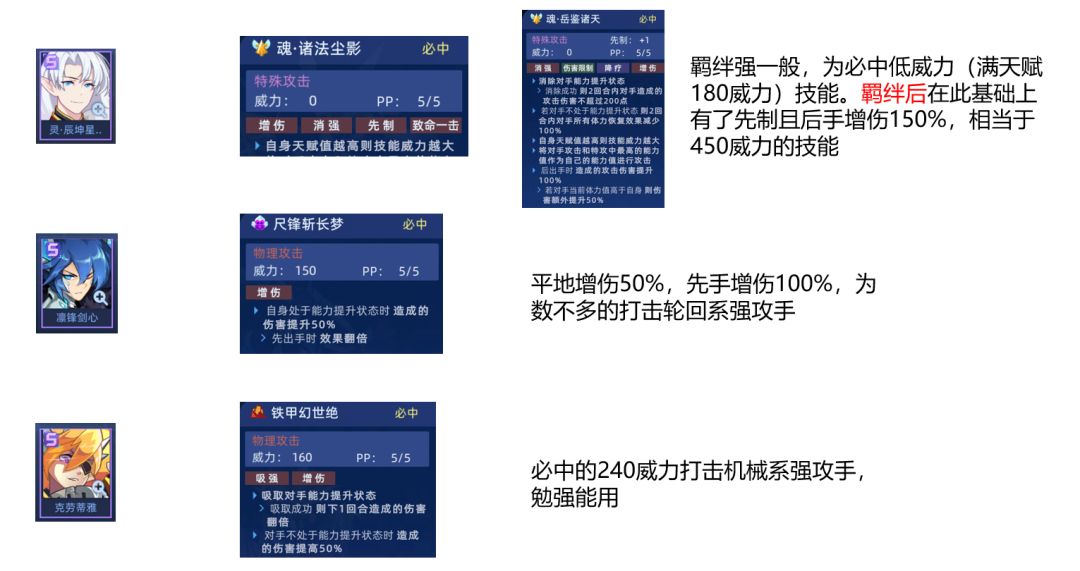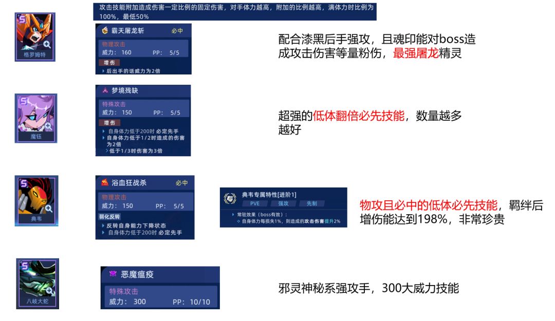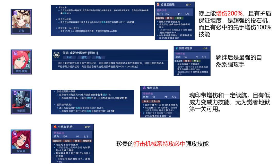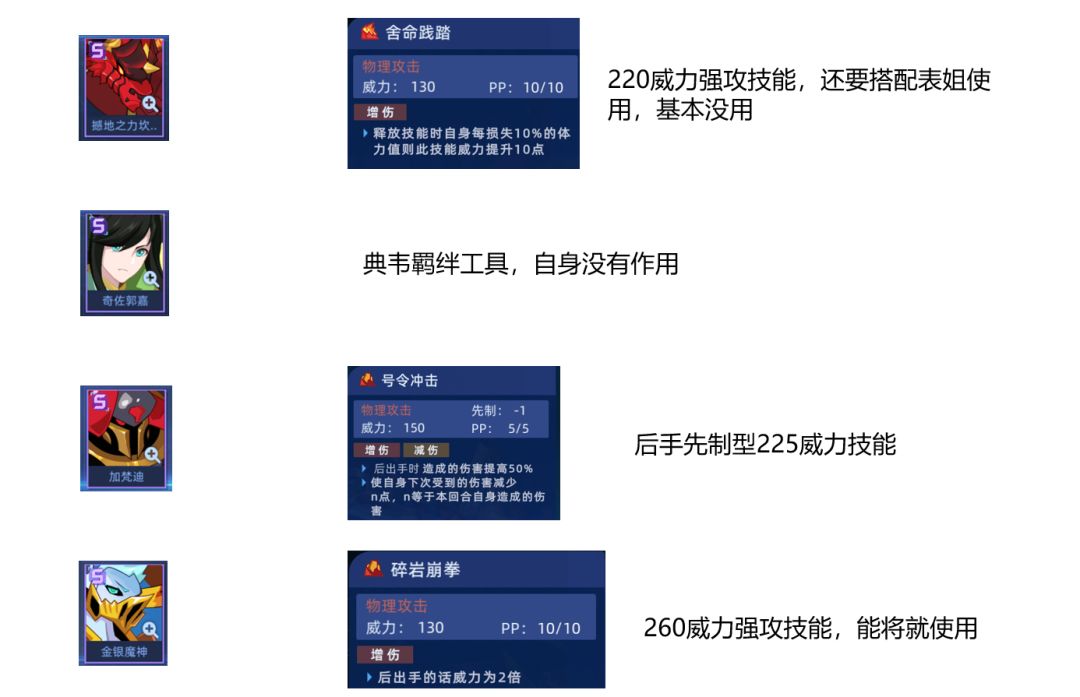 这几个用处不大,没有典韦,金吉娜等有300+威力技能的精灵时可以勉强使用。