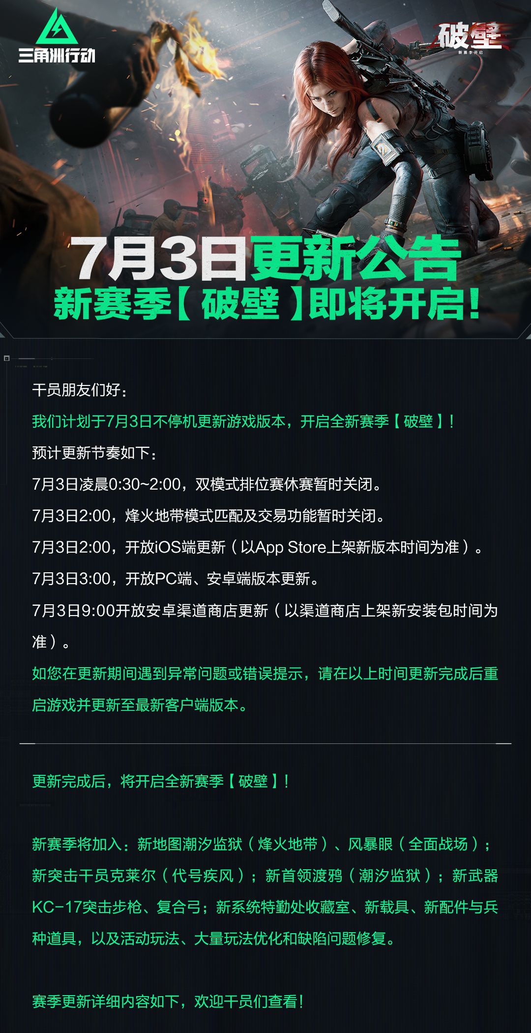 7月3日更新公告丨新赛季【破壁】即将开启!