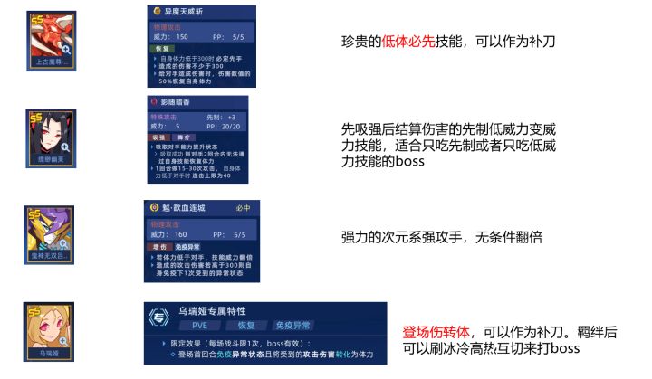 上期介绍了A,B级的PVE有用精灵:这期介绍精灵招募的SS和S级的PVE有用精灵。会对重要精灵进行重点介绍。库贝萨是赛尔号中为数不多拥有必先技能的精灵。常见的必先精灵有魔钰,月照,典韦,时空界皇,灵蛇。其他拥有必先技能的精灵有圣华,萧澈。乌瑞娅未羁绊前有一次登场伤转体,和不死补刀精灵的作用差不多。羁绊后可以多次触发伤转体,配合冰冷高热特性可以互切来击败boss和龙妈互切类似。克罗伟大无需多