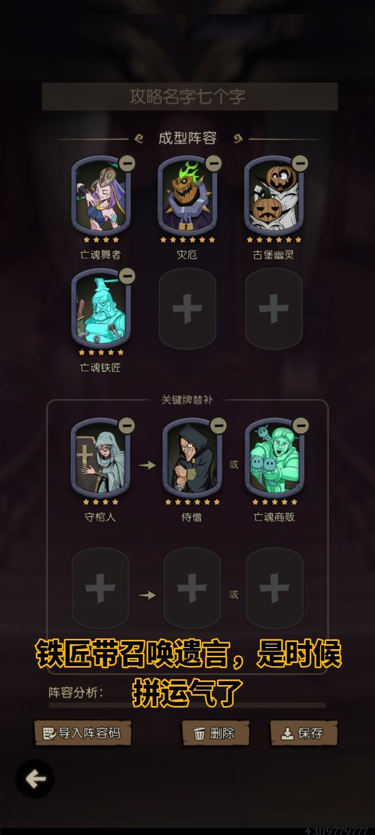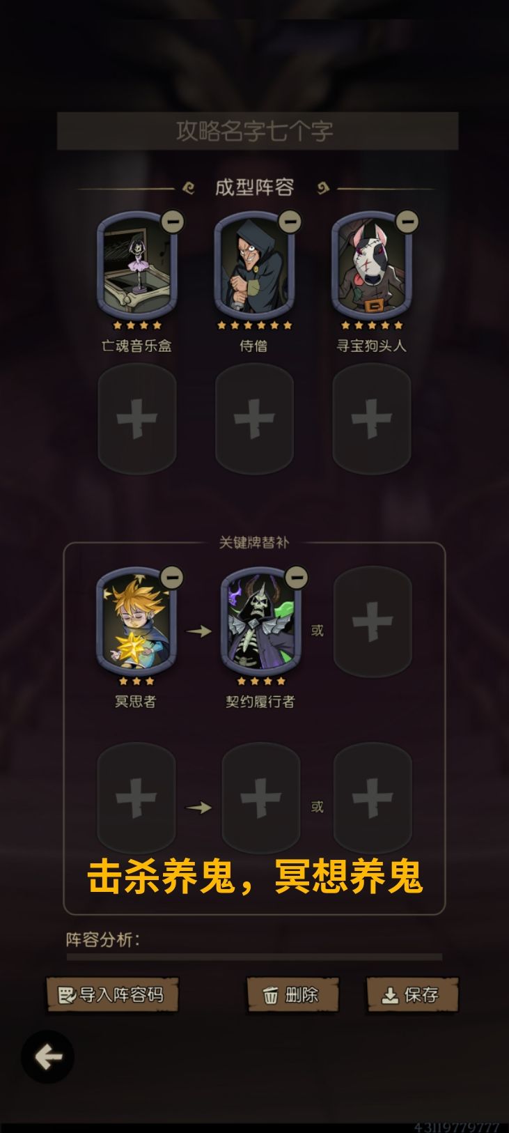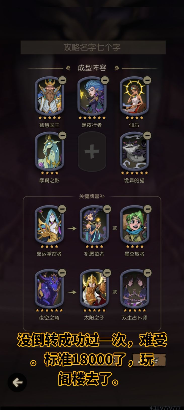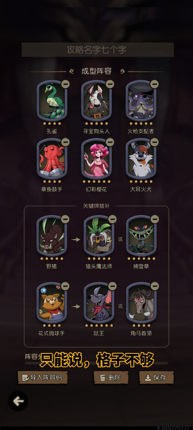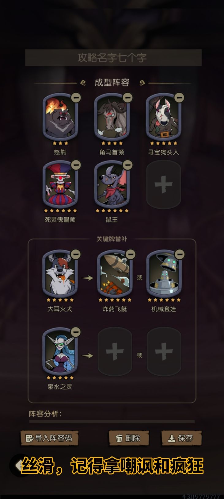 里面有成型阵容推荐,但位置是随便排的。