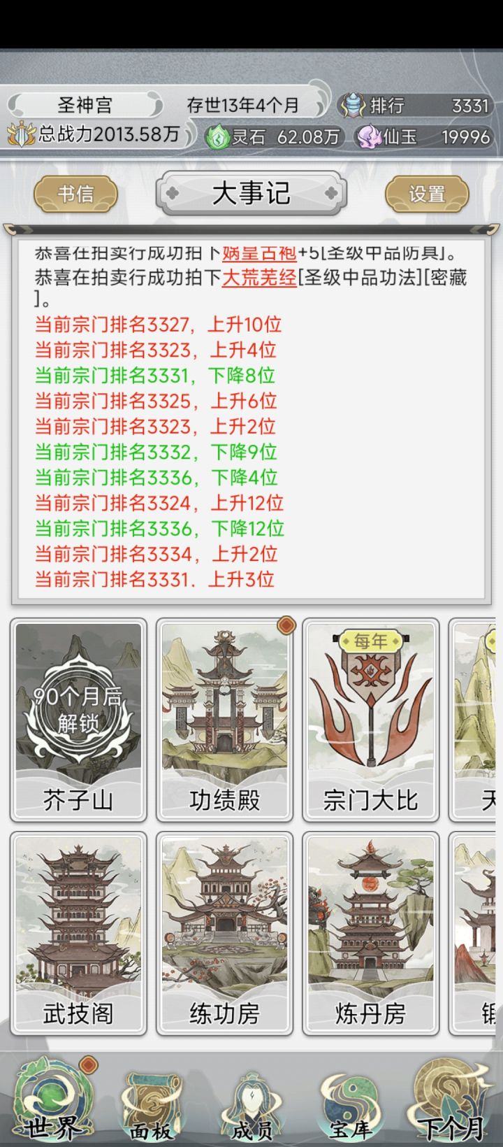 2:秘境和悬赏是没用的东西,秘境容易会死伤弟子,还收获小,轻伤和重伤会减战力,9年6个月开始就不用搞了,悬赏也是收获小还没用,第11年开始也不用搞了。
