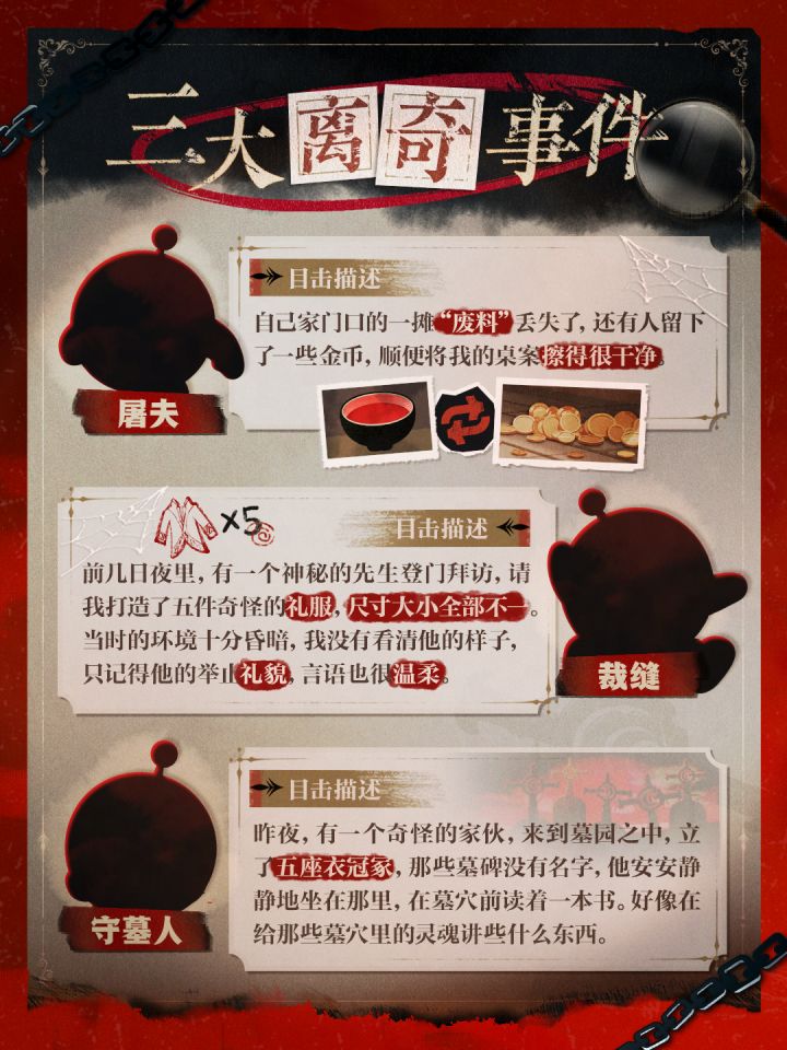 雾月王城近期传闻四起:屠夫案头丢失的“废料”,裁缝铺怪异的礼服订单,墓园新立的五座空冢,被处理干净的案发现场和遇害的神职人员......