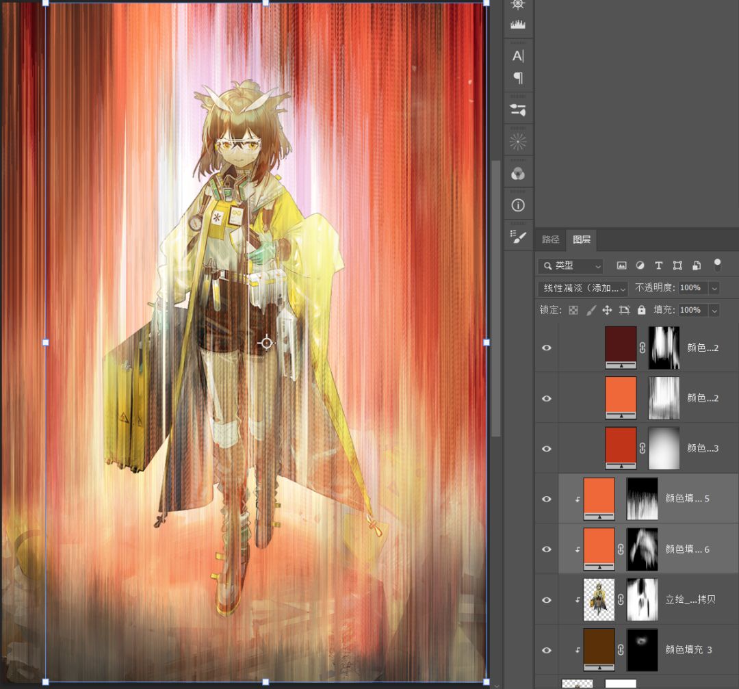 6.先把人物隐藏,做底层红色光,混合模式线性减淡(还是纯色+蒙版)