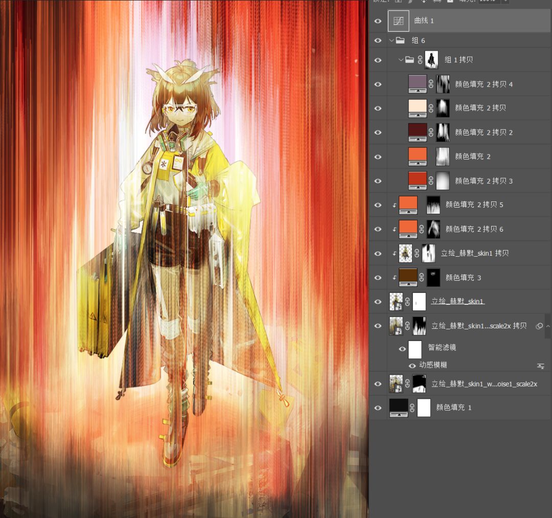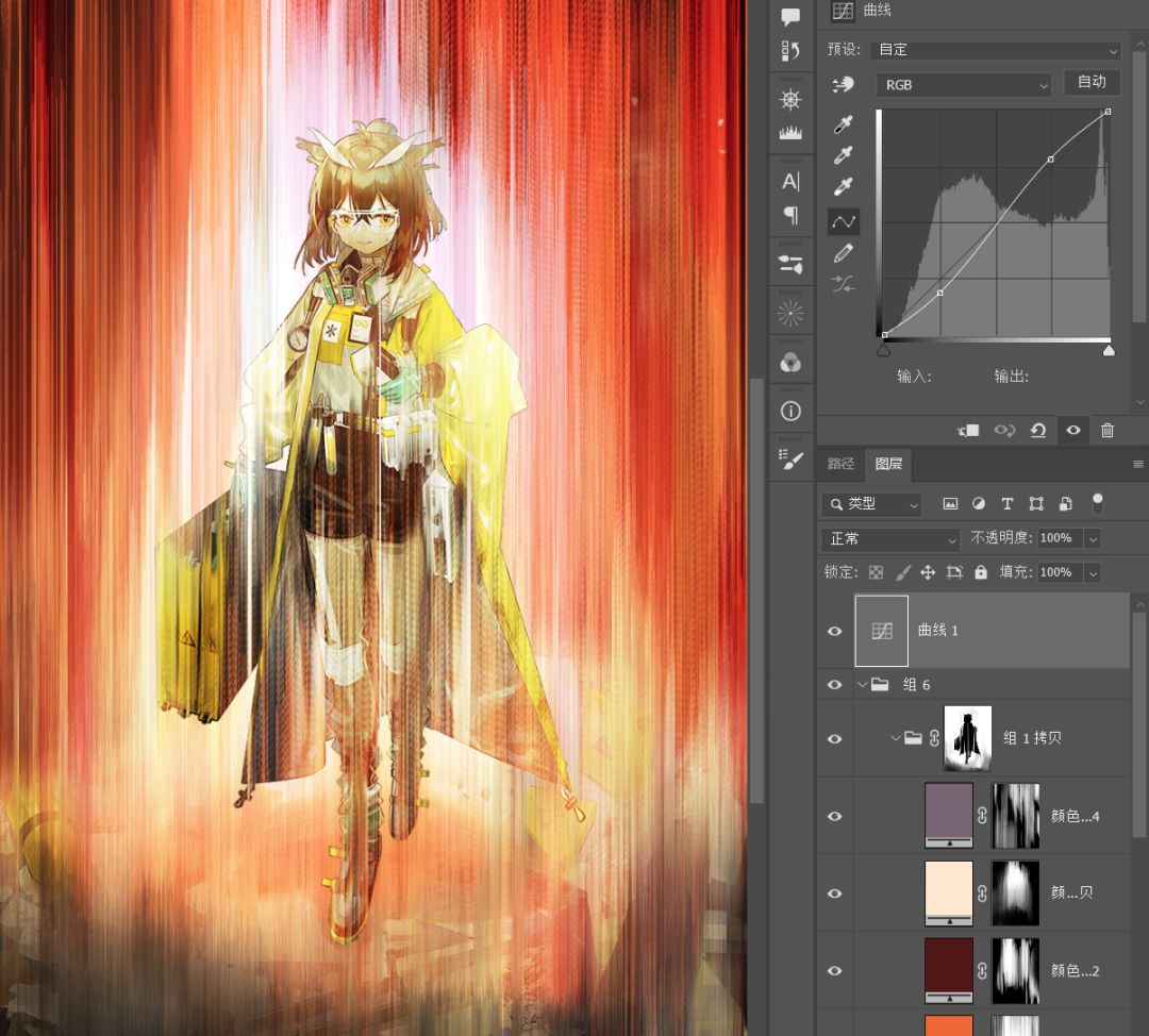 11.给光效打组,加蒙版露出下方的人物