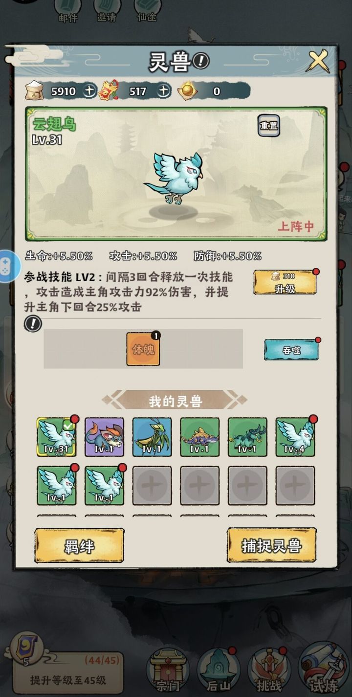 7.升级3次灵兽(口粮多可以升级主宠,否则升级3次一级绿宠即可)