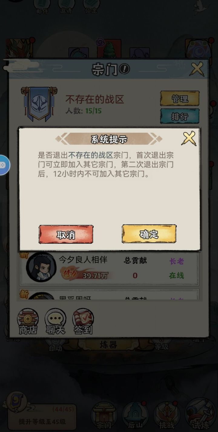 昨天忘说一件事情了,那就是宗门。刚开始可以随缘加入一个宗门,然后查看排行第一的宗门,或者前三的宗门叫什么名字,记录下来,等到自己升到60级后,首次退出宗门可以立刻加入其他宗门,所以我们要选择加入第一宗门,抱紧大佬的大腿,同样这也是为了后期八荒,降魔和凶兽活动着想(做人有梦想,有理想,有志向固然重要,但是实力不允许;所以选择加入第一宗门吧,不要妄图浪费资源去创建理想中的第一大宗门)。