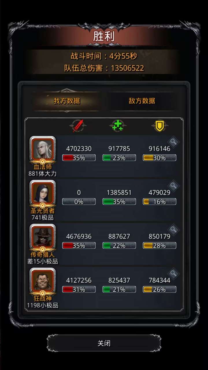 整体思路就是先让四个人都活下来,然后补输出,装备护甲都要锤高,体质有一两件比上限低100左右可以接受,柱子部分法师蛮子冒险战测什么都能用优先拉80,祭祀拉到能活,猎人也是拉到能活,真缺输出再拉一下猎人
