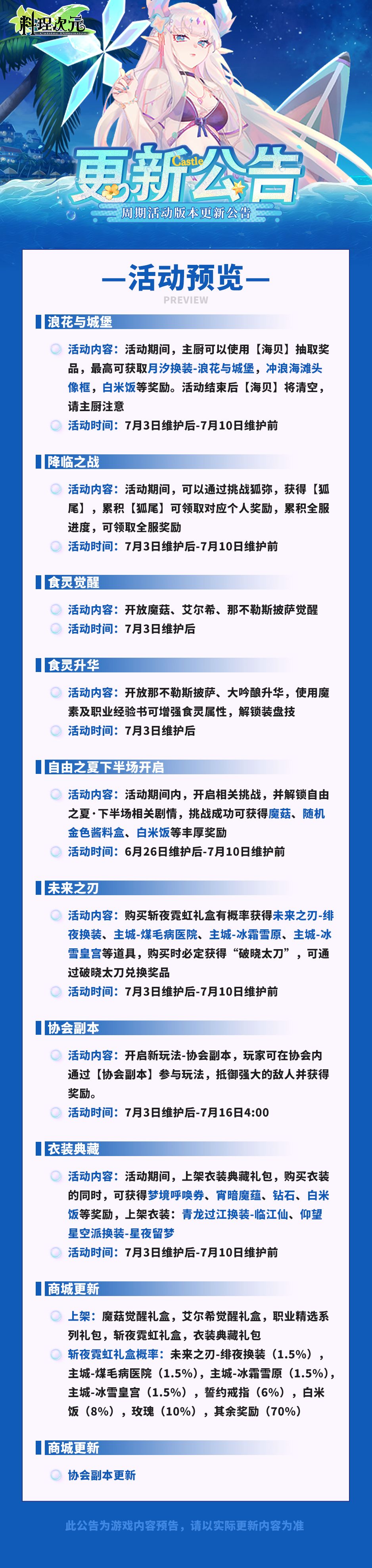 更新公告 | 7月3日 弹力盛夏,浪花与城堡!
