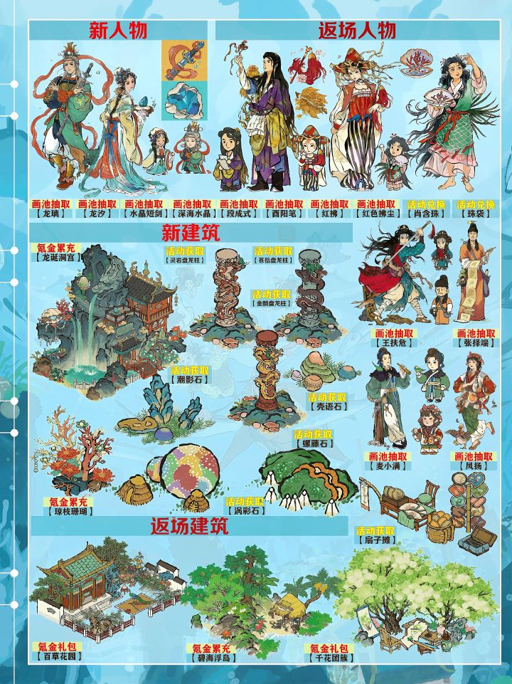 4️⃣返场建筑:百草花园|碧海浮岛|千花团簇|扇子摊