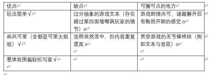 剧情方面,是一个谜题,即我们扮演的主角要解开自己姐姐死掉的真相。剧情给的暗示过分多,甚至玩到一半,游戏领域大神们应该就能把故事的谜底给猜个七七八八,但具体到游戏里,精心挑选的BGM一响,CG一放,那种豁然开朗的感觉还是到位了,剧情上的确做的不错。而除了剧情之外的游戏文本与游戏设计……就是非常看玩家口味的地方了