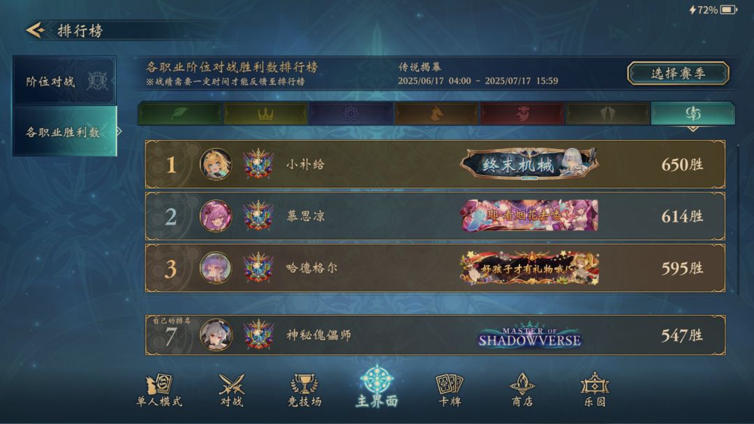 目前是大师分段,超越者榜7,然后这套卡组再红宝石阶段可以轻松打连胜,是验证过的哈(要是你分段过高觉得打牌困难,可以尝试去连败降低分段哦)。