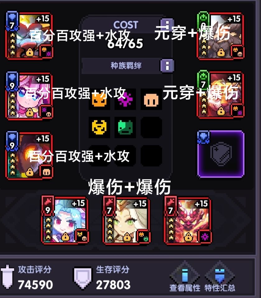 羁绊要凑齐魔物和元素羁绊,少一个伤害会低不少