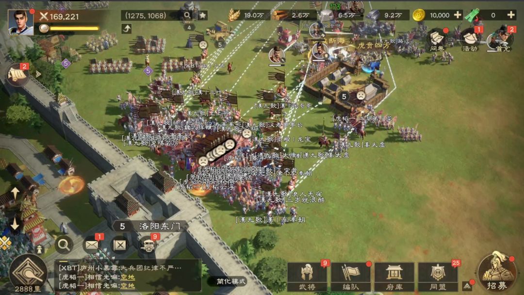 【虎韬】也不含糊,10分钟过后【漢九歌】第一波拦截大军被消耗殆尽,【XBT】再分兵攻击【漢九歌】同盟官署,开始拦截【漢九歌】第二波前往洛阳的部队。可这也无法阻拦漢丨车奉朝为首的将士们前往洛阳东门。