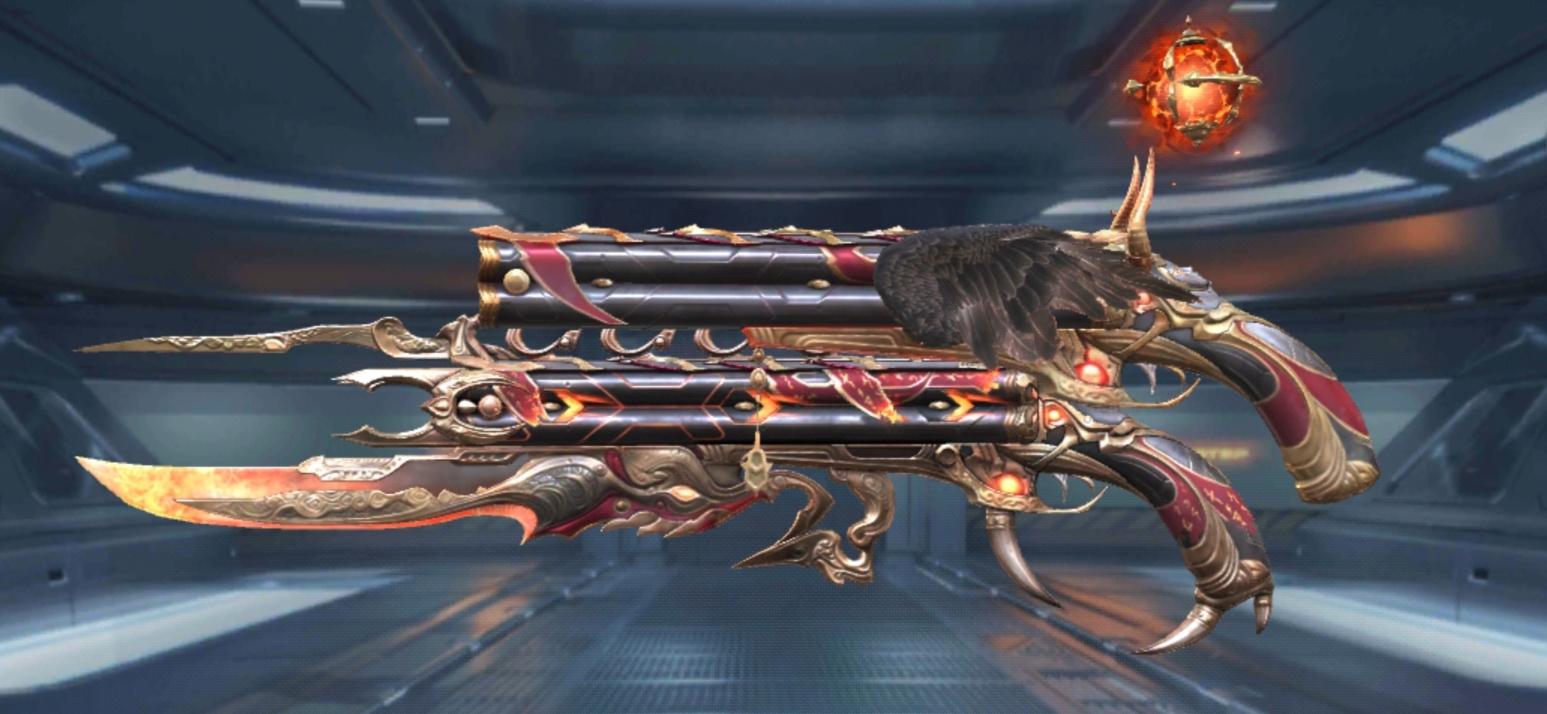 动态表现同样惊艳:切枪时,双翼会随着枪械切换的动作舒展如翅,仿佛下一秒就要破空而起;换弹时,双枪交叠旋转,犄角上方的血色宝珠骤然亮起,丝丝缕缕的神秘能量顺着枪身注入弹匣,仪式感拉满。