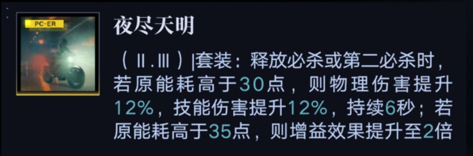 夜尽天明(2、3号位),根据能耗和职业提供加成,原本是安吉尔的专属烙印,现在是重构白逸的专属烙印,如果有白逸并考虑重构,优先级提高