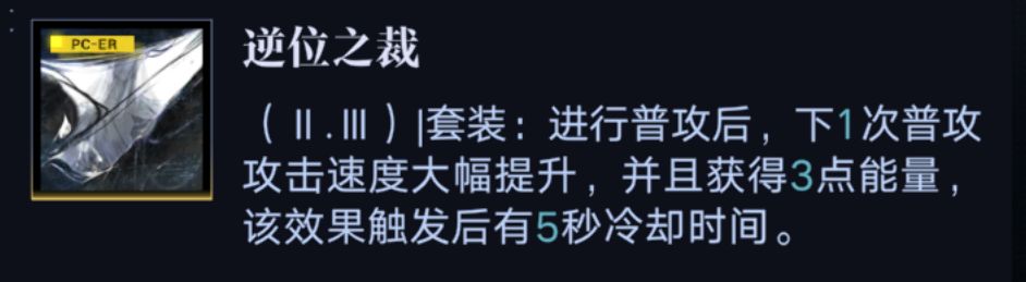 深海之囚(三件套),提供攻速、普攻、技伤,但不能开大,适合狂厄特训里拿到了诺克斯专属buff——普攻变为灰败剑气、每秒扣除能量的buff时可以使用