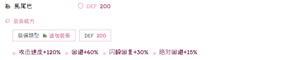 其次是角色的装备,这里给一套我觉得性价比很不错的配合DA加点的装备,可以直接抄(约3000w成本),可以刚刚好达到万速+5w以上血量(佣兵的)+3800命中