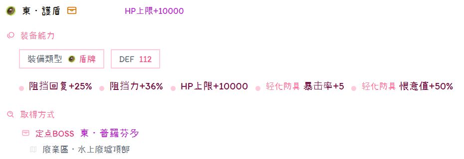王掉 东·护盾好处在于10000HP,能给佣兵加20000HP上限。获取方式在东·普罗芬多破位胳膊概率掉落(左右哪条我忘了)