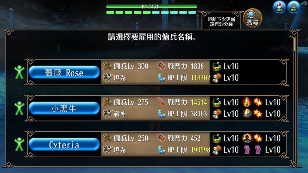 例如:选用蔷薇ROSE的佣兵,300级11.8万HP(写此篇文章时等级上限是300)