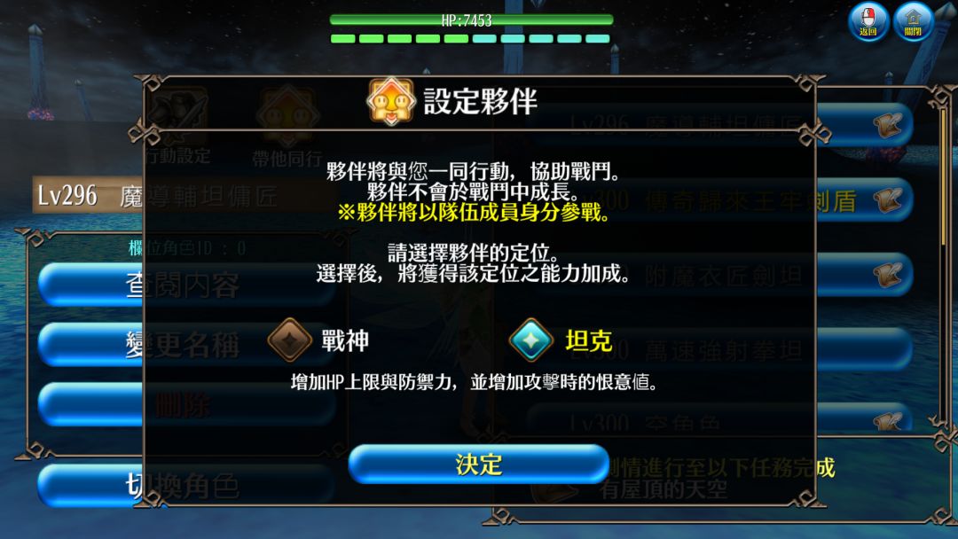 点击带他同行后,选择坦克,点击决定即可成功召唤,注意自己的佣兵是没有心情限制的