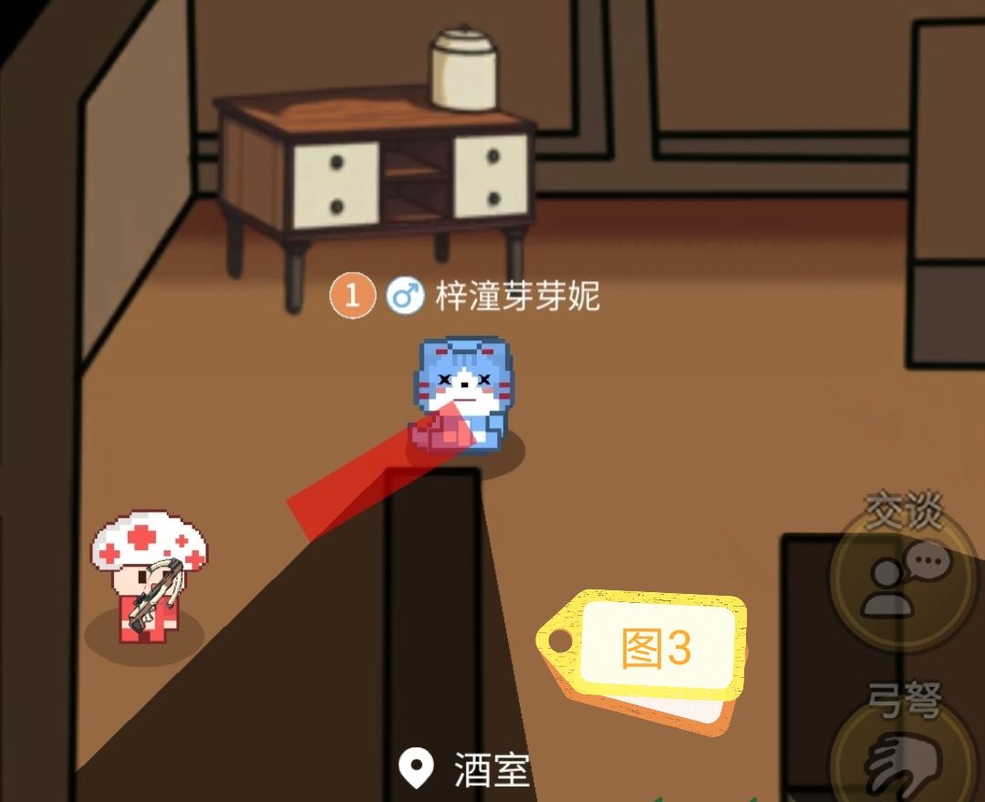 两人分别拿取桌球室和酒室弓箭互刀。可以在酒室如图9,圆桌如图10,餐厅桌如图11