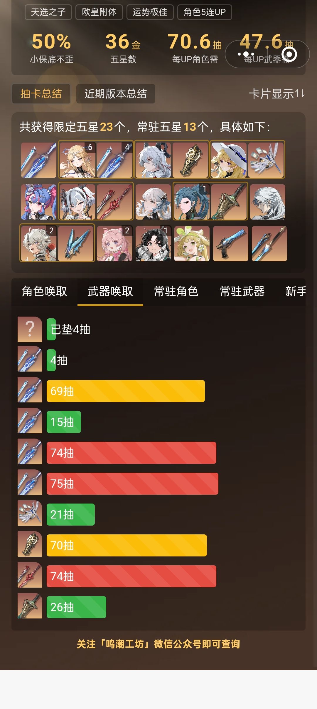 634抽16金,6+5,平均39抽一金,和卡提西亚的双向奔赴!