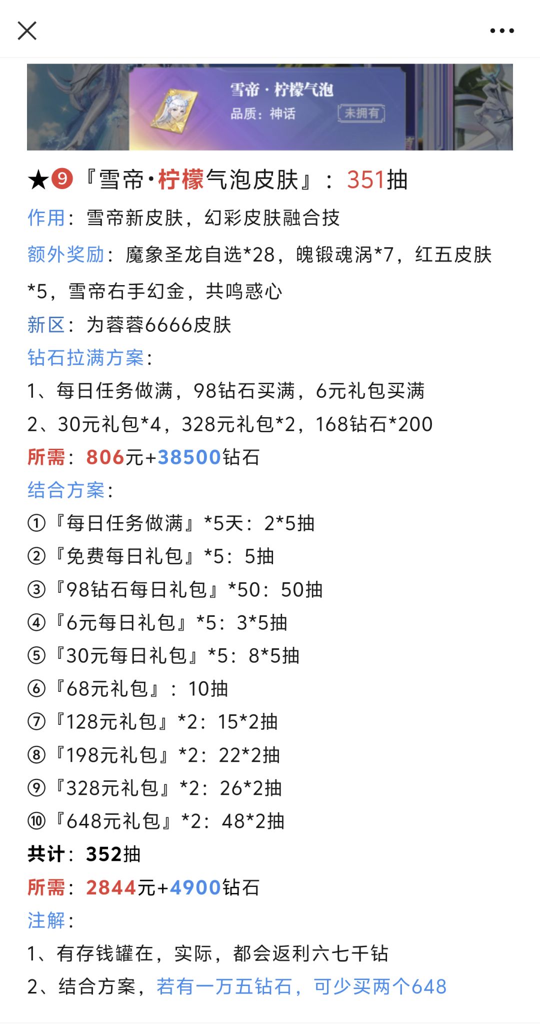 哈喽,大家好,我是看新皮肤的花逝,泳装雪帝有点贵,钻石多除外,另外带来了周年庆的一部分活动攻略,我的钻石还剩余:40312…