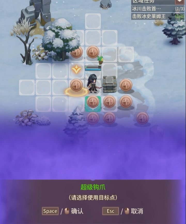 我们都知道勾爪可以让角色位移到对应位置,但是道具介绍里少了一点,就是他可以拾取路径上的所有道具,其实我们就可以利用这一点节省回合数,拾取更多的道具物品。