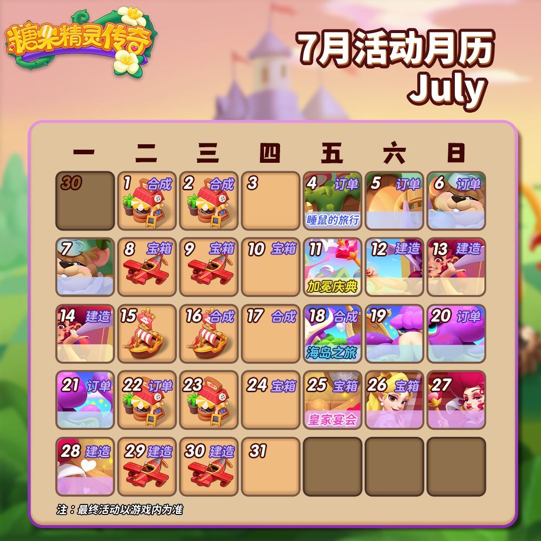 每四天轮换的竞赛活动(合成、订单、宝箱、建造)排期,见文字标注哦~