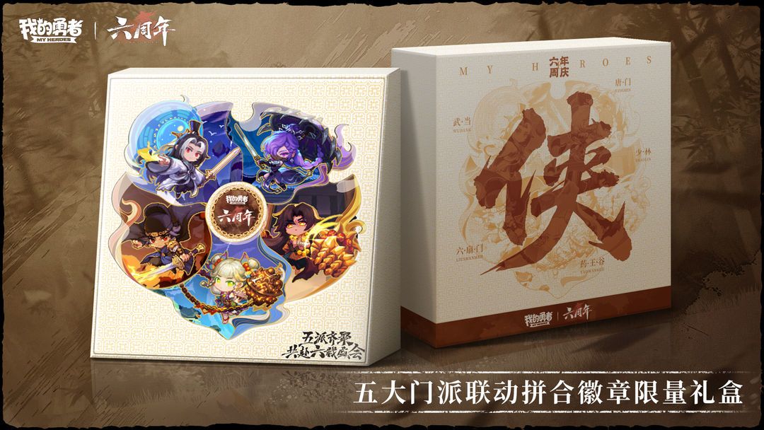 我们将在7月10日16:00抽取5位勇者各送出6周年五大门派联动拼合徽章限量礼盒*1