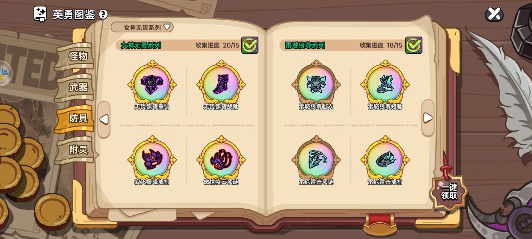从开始到现在副本里的防具手饰差不多齐了,现在就差鬼蜮还有狼王,诡异下周就可以了,狼王 嗯 应该 可能 大概 也许这周就可以了,毕竟这个爆率我也说不准,本来应该会再晚几天发的但是这个究极暗影兽给的实在太多了(每天16.6w金币),暂时让我摆脱了金币的困扰,顺便给雷枪强化满了。下一步应该是把 赤沙疾影 拉满,