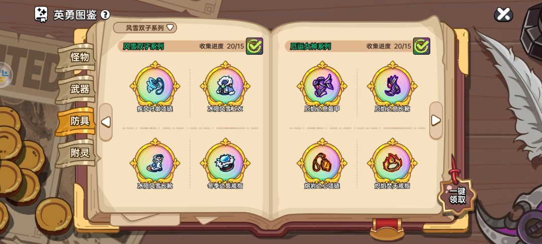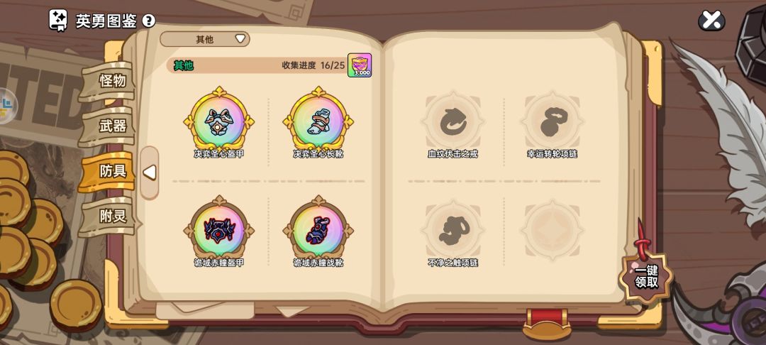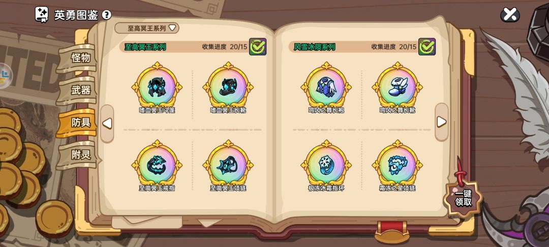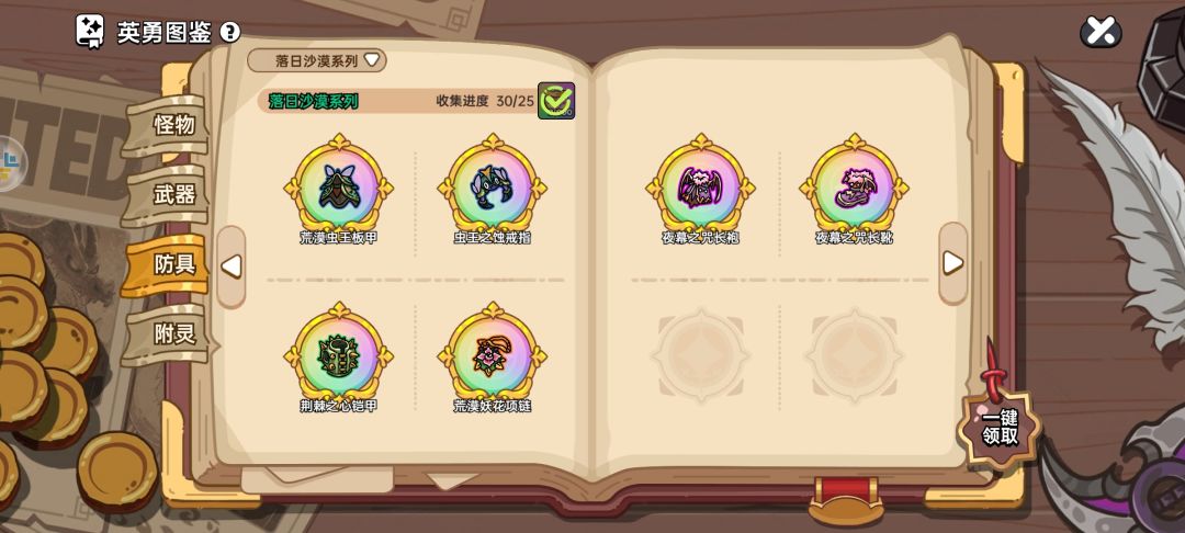 然后是冰系的三个武器(冰弓差个升华)(触手书准备用突破石直接代替),最后应该是物理套,大致就这样。中间可能会拉镰刀和旗子,毕竟我也不知道我的强化砂够不够但应该是够的。