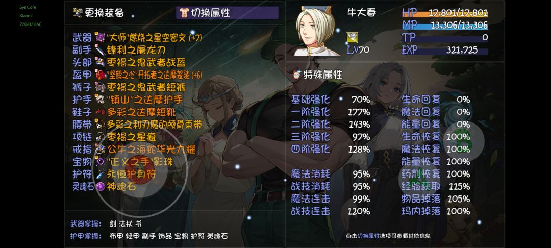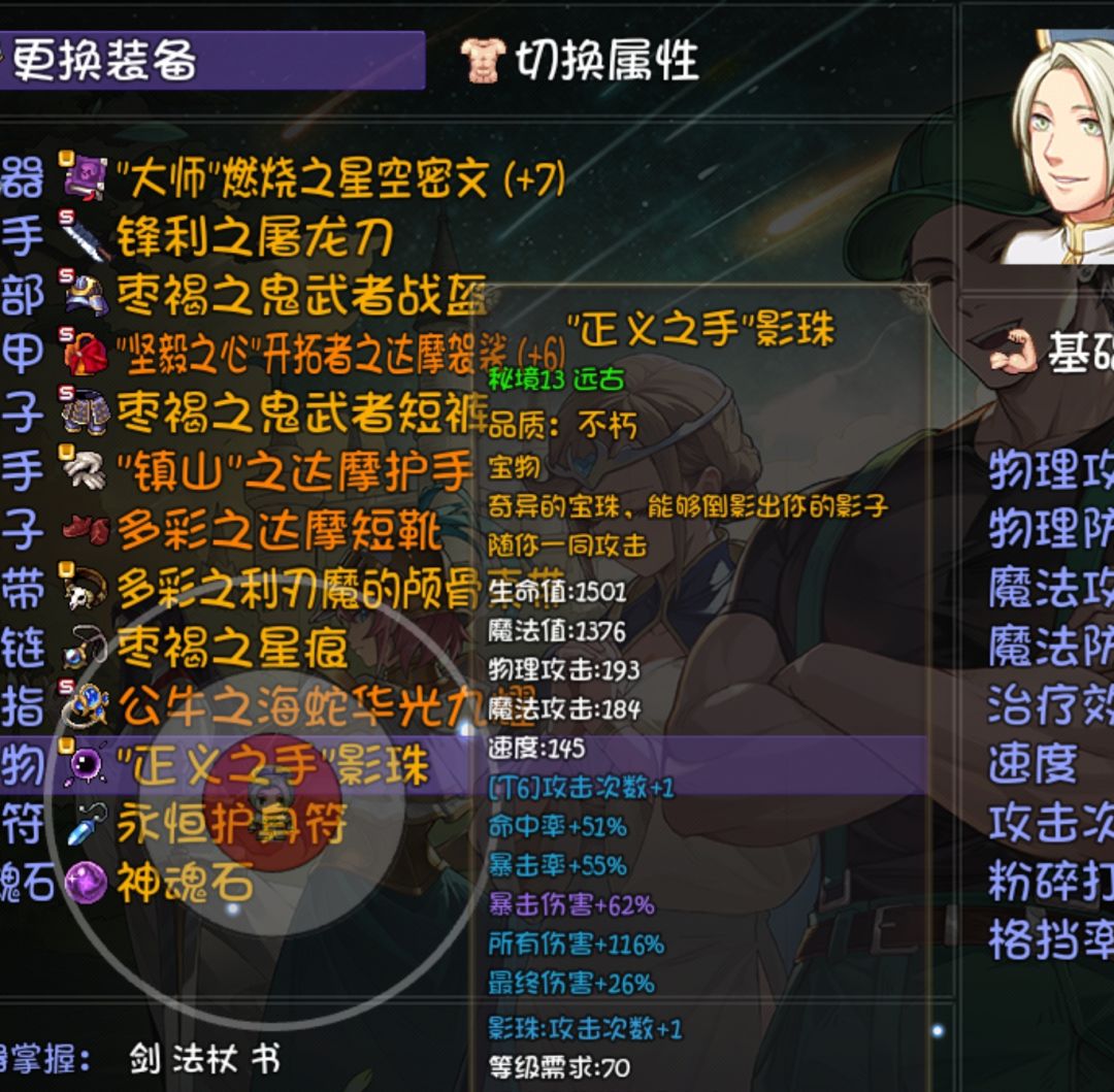 3.大春主手书用星空密文,副手不用非得用剑,也能带紫金钵,这样能多带一件辅助装备,比如霸王朔(减150基础属性和30%暴击闪避)、减伤盾、金刚杵等。