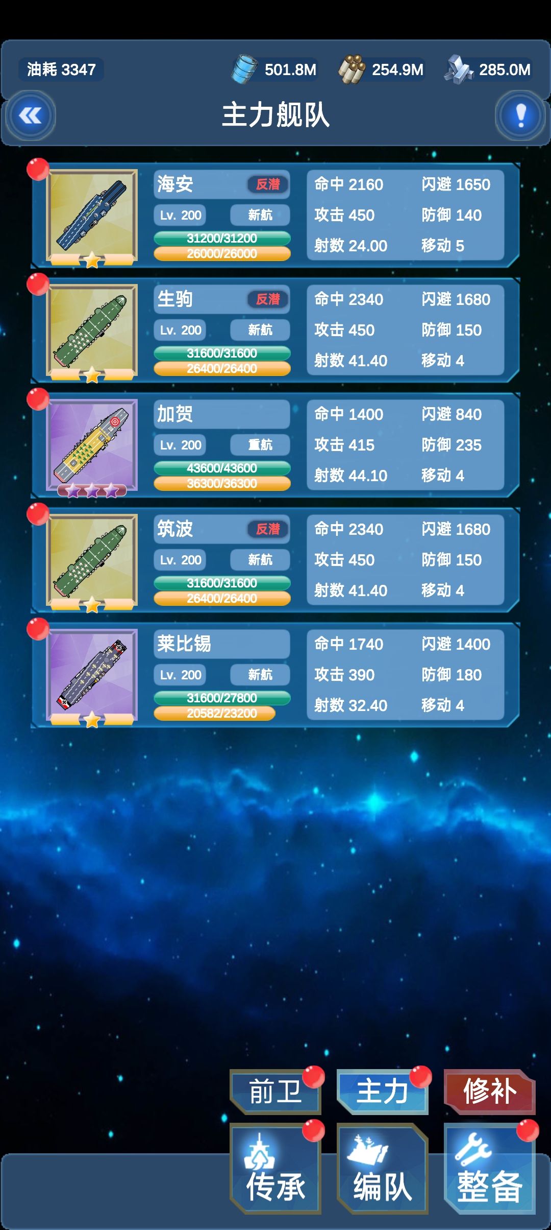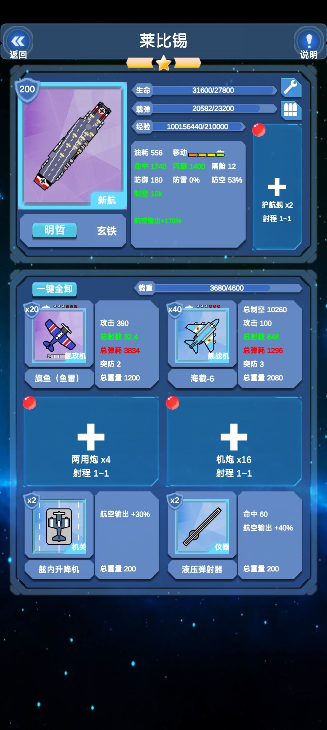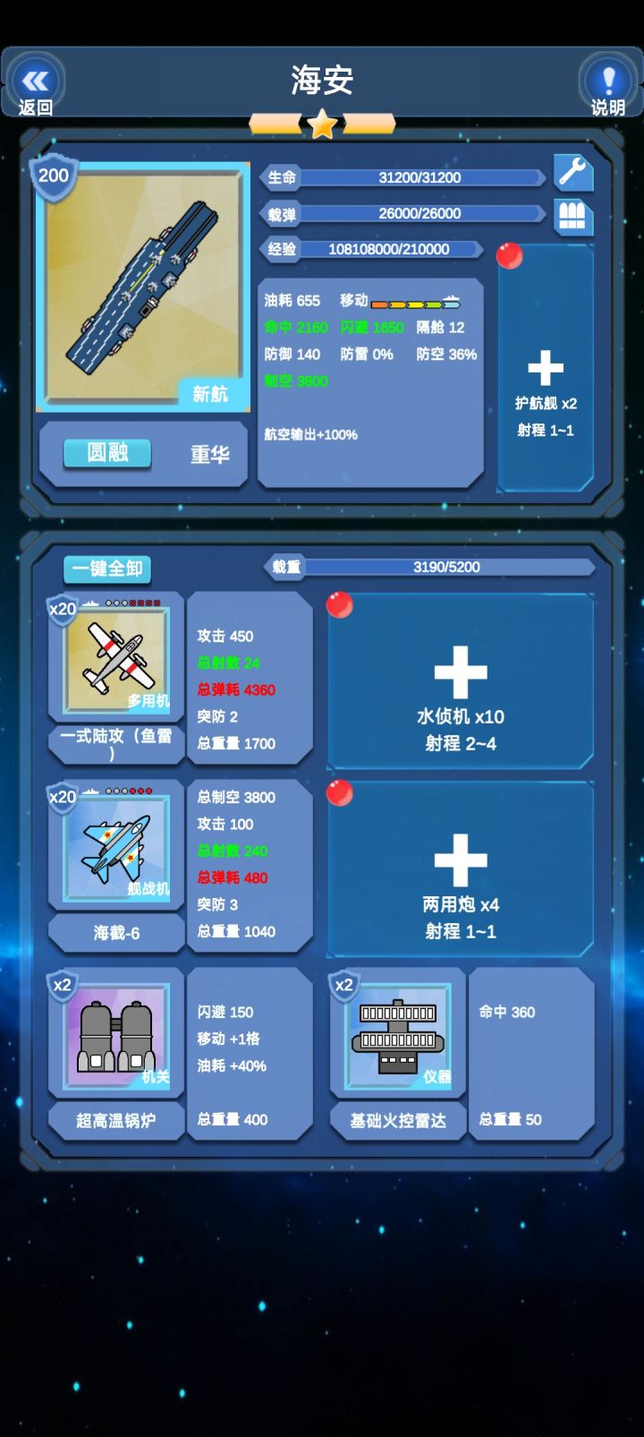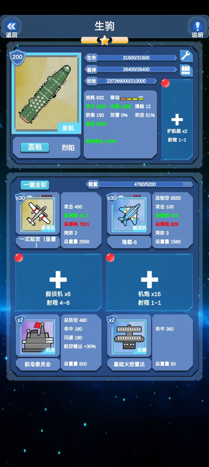 同样是为了模拟萌新命中不够,所以只带了5条航母(避免制空过高),要是萌新打起来吃力可以多带几条