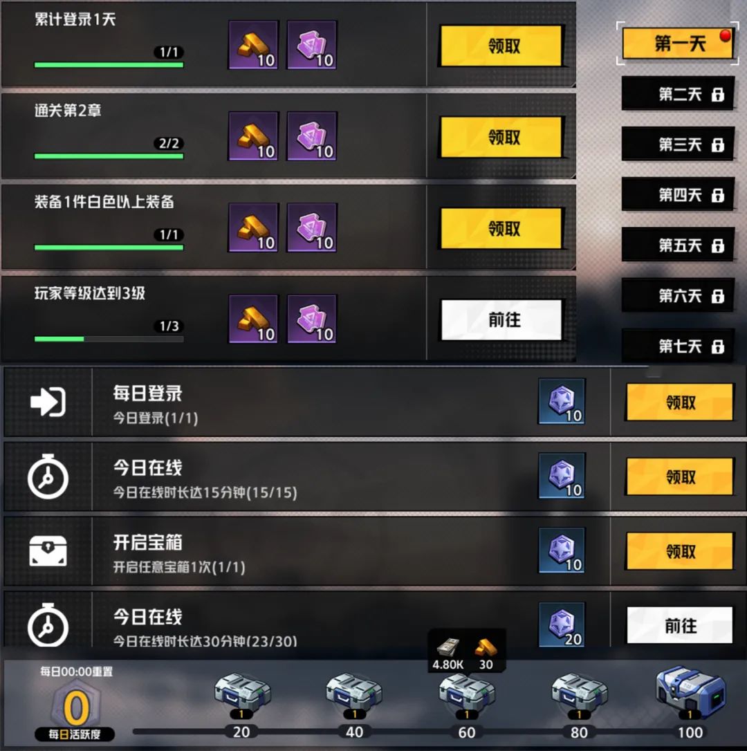 2.每日任务完成可获得金砖*80,每周任务完成还能额外获得金砖*450