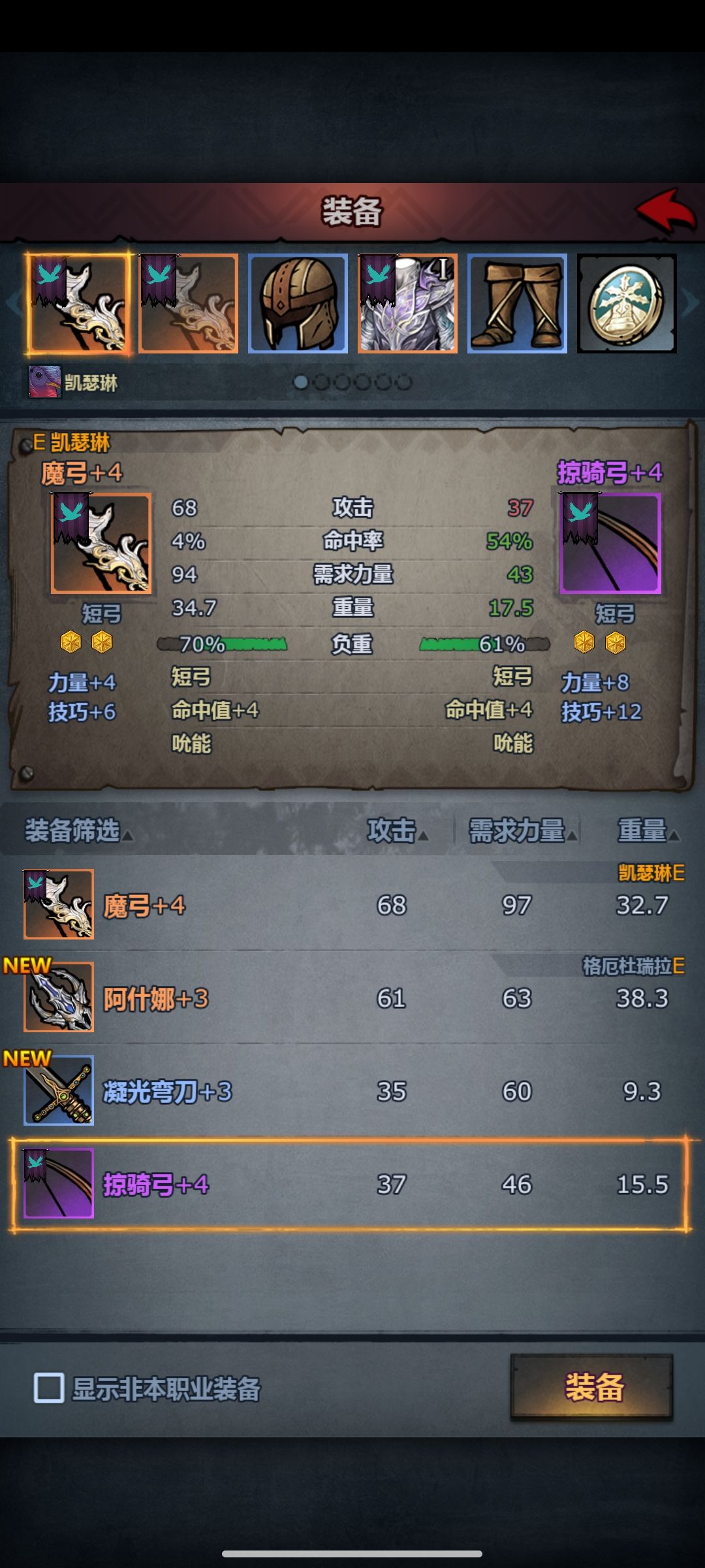6.掠骑,放逐削弱后只推荐佩神掠骑。无神像的话,b敏,力技3s以上:sss技a力或者ss技s力均可,有科内塔,a感以上,s感更好。即可觉醒,神特选择:洞察+夜之吻/野性,实在没有洞察+真圣也可以。日常任务用魔弓(无需注入神器,没有就法拉主城购买的精灵,改造:镶球-允能。五级允能配合一级神器甲生命之灵的续航已经很强了)。打日塞的时候带上商会主城购买的弯刀+小盾(随便一个小盾,上至黄金盾下至随意白色小盾均可,加一丢丢防御,有胜于无)+古特圣物(圣物技能:真伤+双反击伤害),然后放逐技能换长虹,屠上去塔面前,然后等爱的魔力转圈圈就行了。噩梦试炼挂机硬性需求:三级以上放逐+古特圣物。细节:掠骑职业精通要精通技巧,但他默认是精通力量,需要自己改一下。所有的神器任务以及九盾捡宝箱+日塞就交给掠骑完成了。