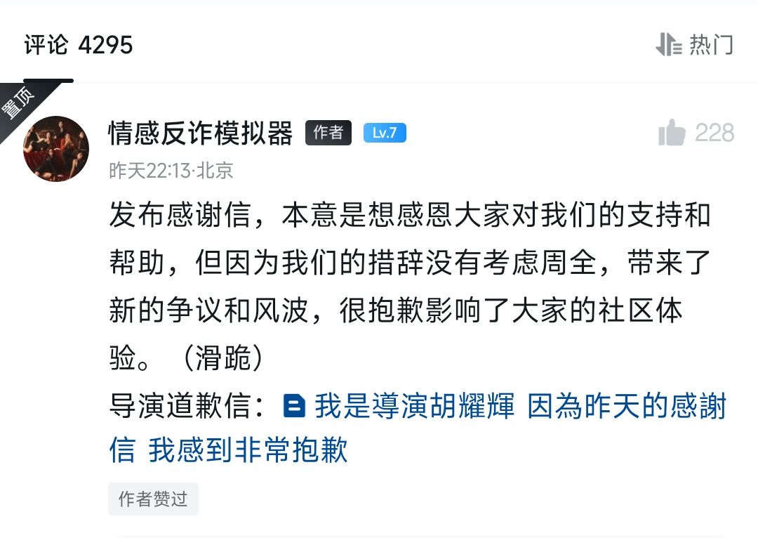 《情感反诈模拟器》因导演感谢信而遭差评
