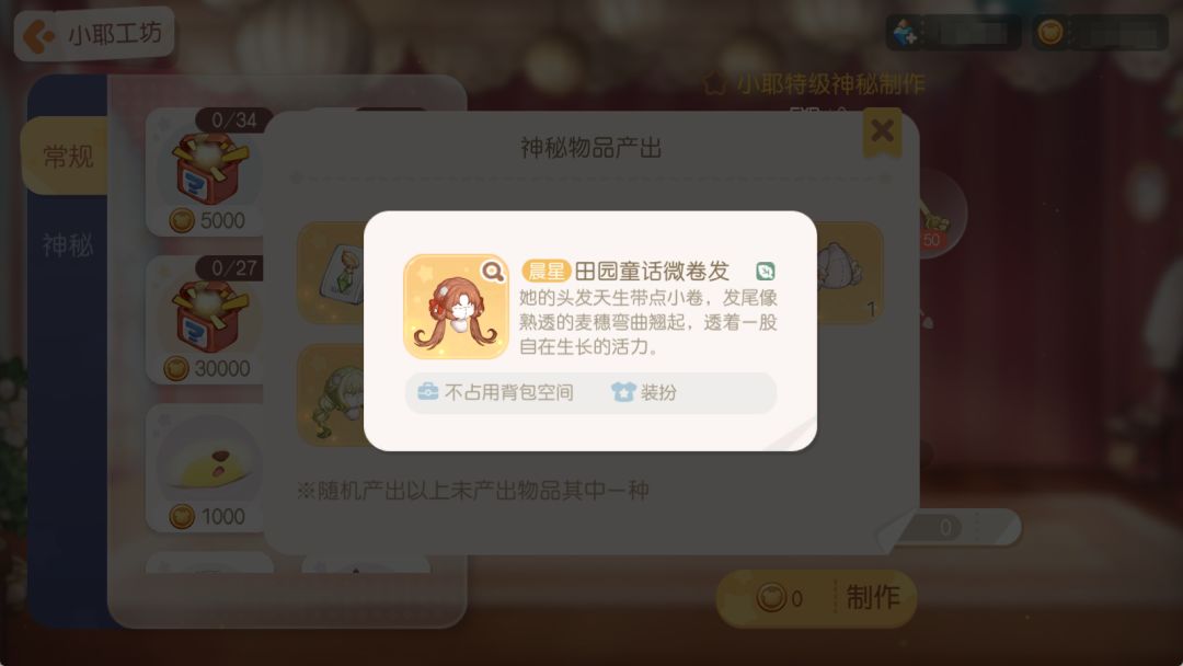 活动介绍:版本更新后,小耶特级神秘制作将新增晨星品质时装「田园童话微卷发」「牧野追梦棕色发」,小奥比们快来找小耶制作新服装吧!
