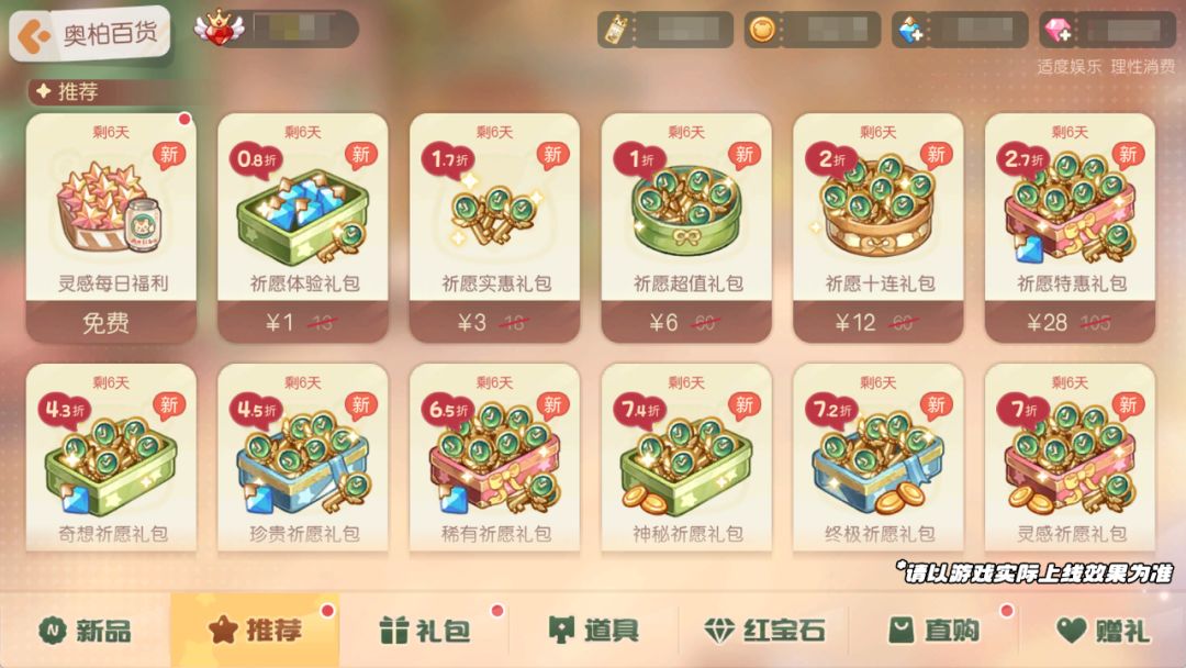活动介绍:「奥柏百货」上架全新限时礼包——「熊次元特惠」系列折扣礼包,限时折扣优惠商品不可错过!